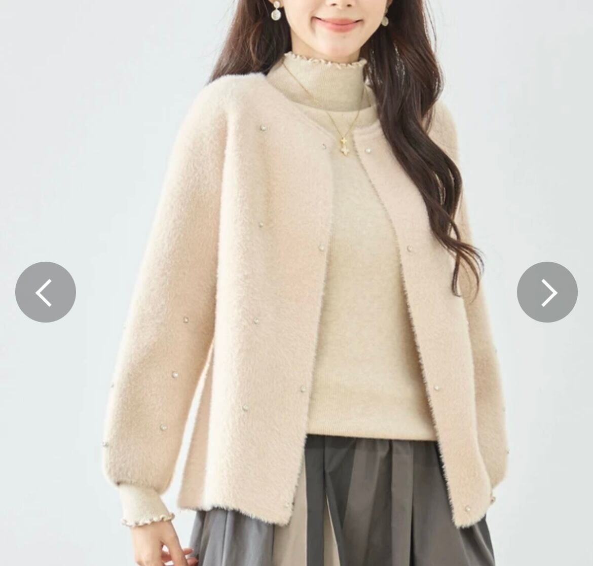 ・ノーカラーで大人っぽく顔周りを綺麗に魅せてくれるアイテム♪