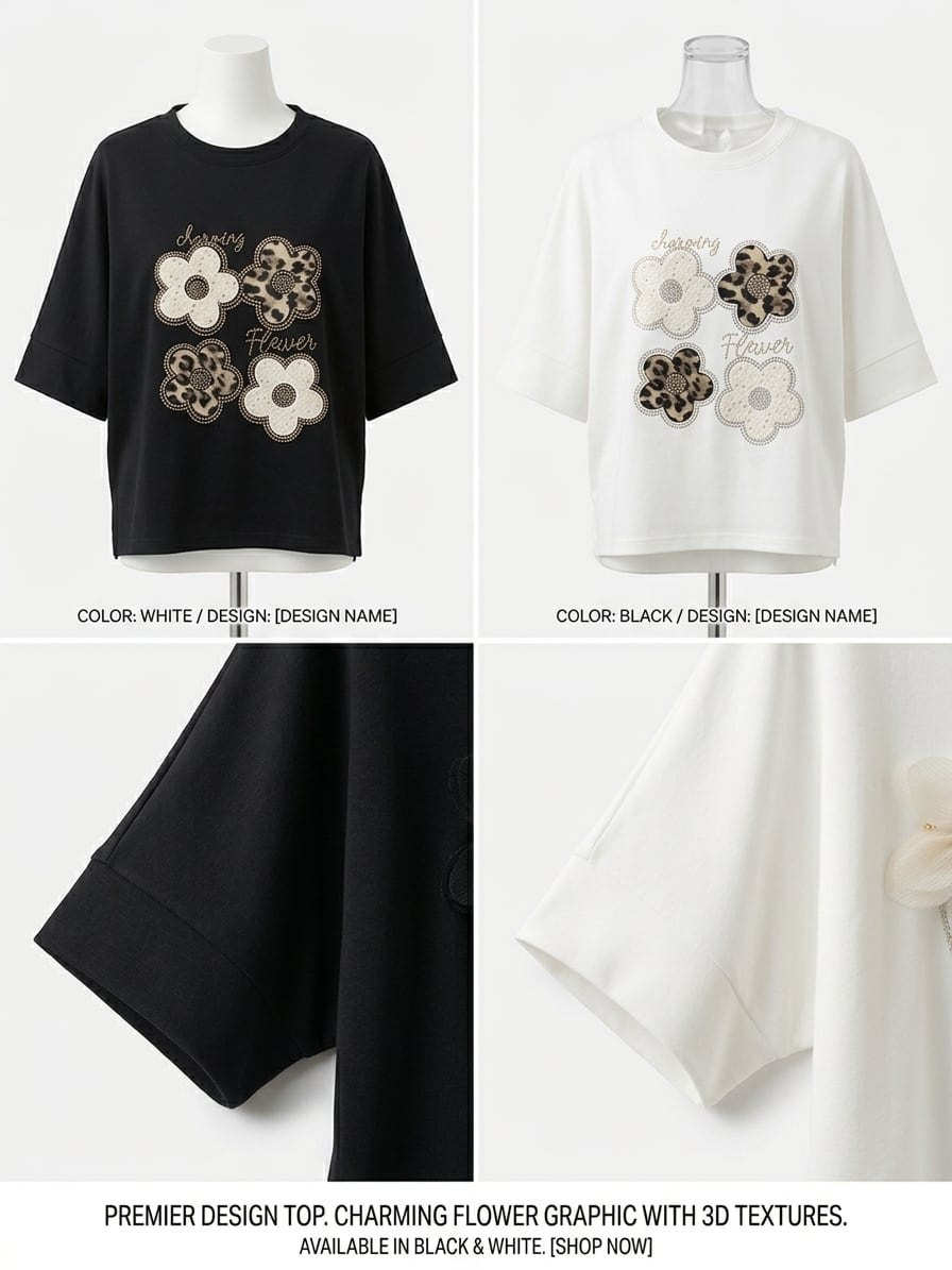 キラキラ付き小花モチーフプルオーバー