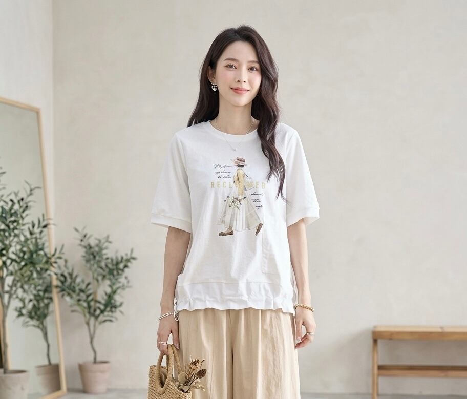 散歩女性柄プルオーバー